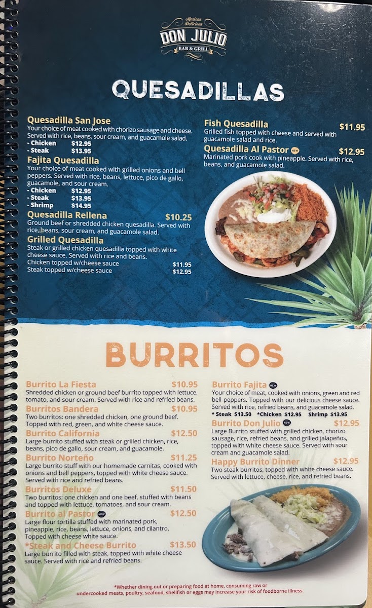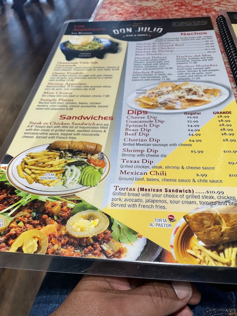 Guests rave about the moist rice and delicious beans, alongside a magnificent queso that sets the standard for Mexican fare in the region. The cheerful, attentive staff adds to the experience, ensuring every visit is memorable. The welcoming decor invites diners to relax and savor their meals, whether you're enjoying a refreshing beer or sampling their flavorful salsa.Don Julio's is not just a dining spot; it’s a community favorite that blends great food with a warm atmosphere, making it a must-visit for anyone seeking authentic Mexican tastes.